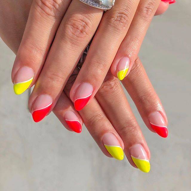 Классический френч появился довольно давно. Поэтому сейчас есть невероятное количество вариаций. Например, кончик может быть окрашен не только белым, но и любым ярким оттенком.