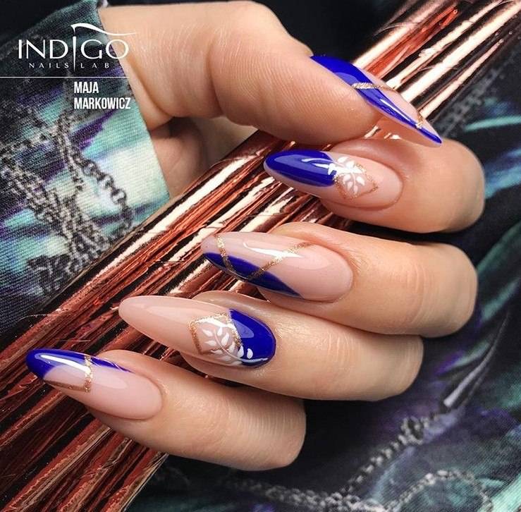 Во французском маникюре можно выделить самый кончик ноготка или одним цветом, или же полноценным рисунком. Рисунки могут быть разнообразные, как ажурные, так и более спокойные, и нежные. Наиболее популярными рисунками в таком маникюре являются: кружевные и ажурные рисунки, цветочный узор, «природная текстура», геометрия и абстракция.