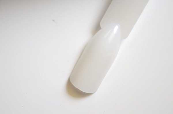Для начала рисуем на ногте основу будущей апельсиновой дольки: большой белый полукруг. Сушим его под лампой.