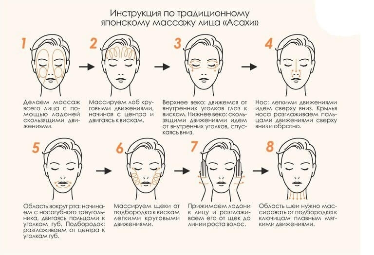 - Если у человека худое лицо, то при выполнении массажа Асахи не так интенсивно воздействуют на его нижнюю часть лица. Такие движения могут вызвать еще большую худобу, чем была вначале процедур.