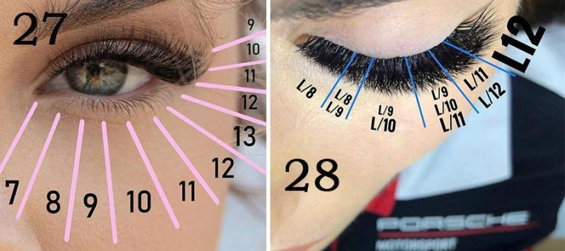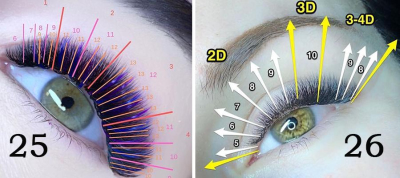 Для задавания правильного направления ресницам приклеивать их нужно, соблюдая определенную схему.
