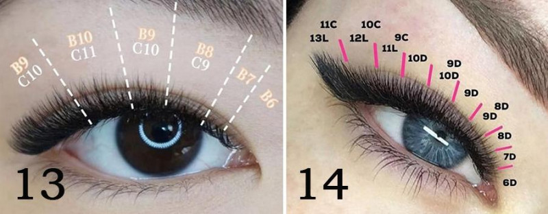 13. Схема натурального эффекта наращивания ресниц с двойной рядностью.