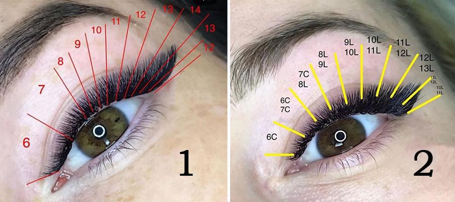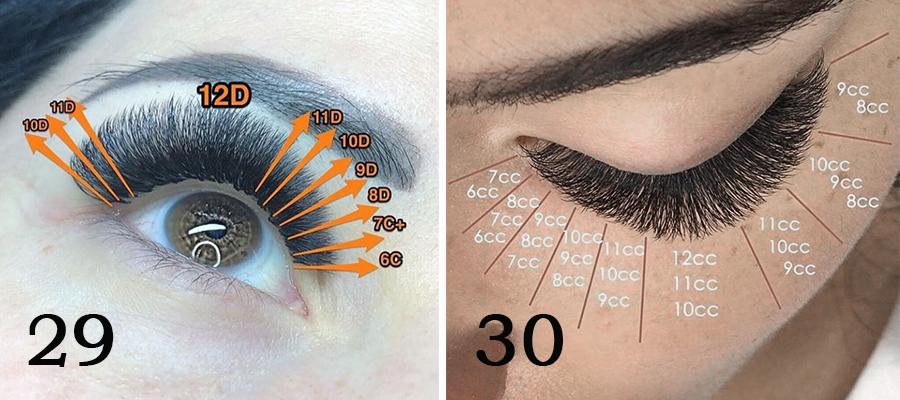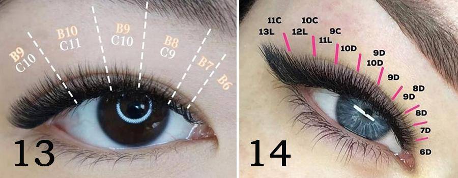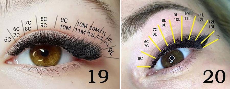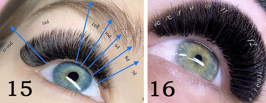 13. Схема натурального эффекта наращивания ресниц с двойной рядностью.