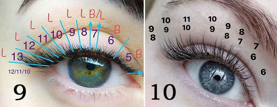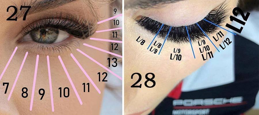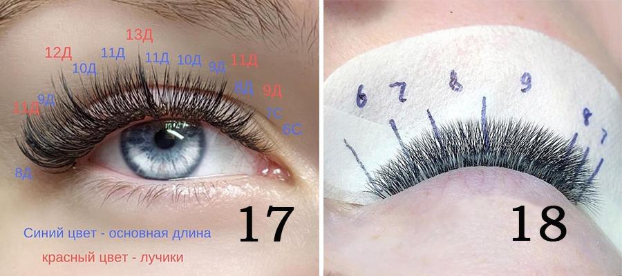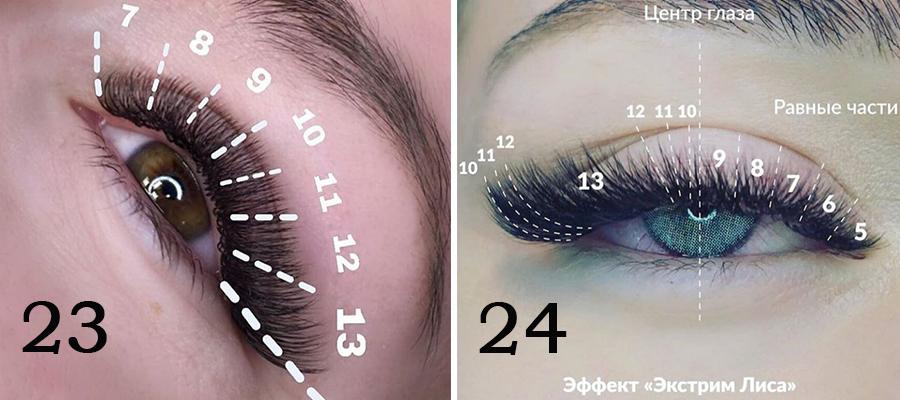 Для задавания правильного направления ресницам приклеивать их нужно, соблюдая определенную схему.