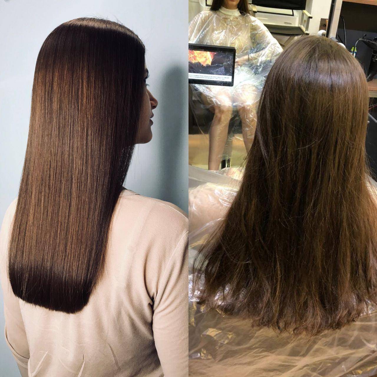 Провести в салоне потребуется до шести часов, если волосы густые и очень длинные. В результате, волосы будут прямыми, блестящими и намного здоровее.