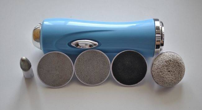 Вместе с устройством в комплекте поставляется 5 индивидуальных съемных шлифовочных кругов, которые предназначены и для обработки кожи, и для полировки ногтей. Для удобного использования и хранения в коробочке есть специальные отсеки. После каждого использования шлифовальные круги необходимо стерилизовать и чистить. Их не рекомендуется передавать в пользование другим людям. Во время обработки кожа должна быть сухой.