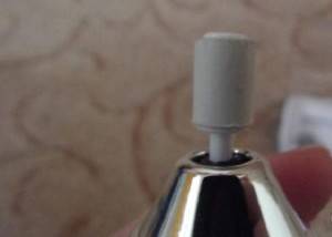 The fifth nozzle is a light, porous pumice stone,It is also intended for grinding and machining heels on rough areas. It is securely attached to the installation plastic disc. And opinions about its usefulness are the same as about the three previous ones. Some buyers note that you can see how unevenly and carelessly pasted itself pumice.