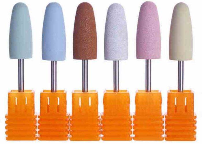 - Керамические рекомендованы для начинающих мастеров. Они имеют абразивность от 100-400 мкм, что позволяет выбрать жесткость как для натуральных, так и для искусственных ногтей. Самые абразивные подходят для шлифовки стоп, удаления натоптышей