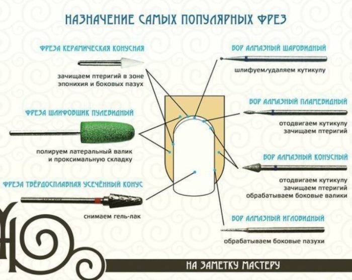 - Есть фрезы в виде конуса. Ими шлифуют и полируют ногти.