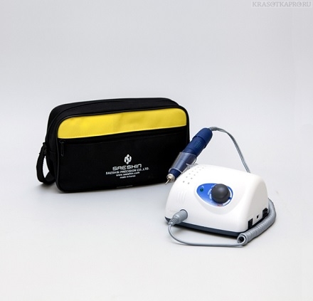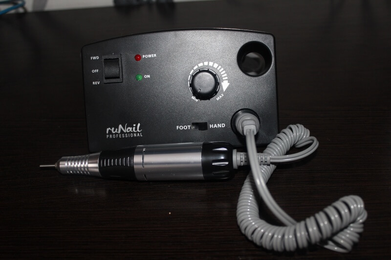 Один из самых хороших фрезеров для ногтей оснащен режимом реверса. В комплекте поставляются ножная педаль, обычная для профессиональных моделей, подставка и запасной предохранитель. Отзывы о маникюрном фрезере отмечают, что менять насадки можно за считанные секунды. Скорость прибора составляет максимальные 34000 оборотов, а мощность равна 64 Вт.