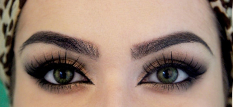 - Главная особенность арабского макияжа — брови правильной формы. Они должны быть черными, четкими, достаточно густыми, но не слишком широкими, иметь красивую, слегка изогнутую форму. При необходимости их можно подкорректировать при помощи специального карандаша.