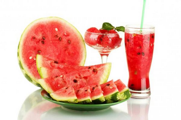 Примерная разовая порция – 2-3 дольки. Добавьте в рацион также сок с добавлением лимона или меда. Каждый день съедайте чуть меньше одного среднего спелого арбуза.