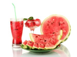 Примерная разовая порция – 2-3 дольки. Добавьте в рацион также сок с добавлением лимона или меда. Каждый день съедайте чуть меньше одного среднего спелого арбуза.