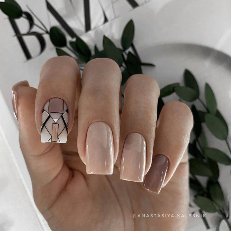Кроме привычного буйства красок, характерного для летнего маникюра, в этом году не менее популярным будет маникюр в нюдовых оттенках или в минималистическом стиле. В тренде будет комбинация черного с бежевыми оттенками гель-лаков.