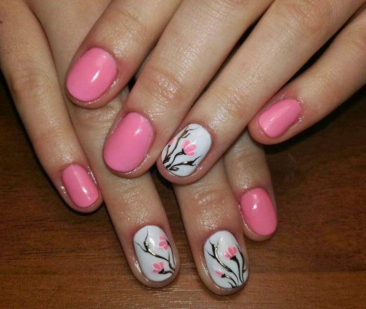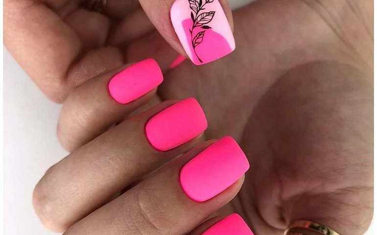Как для одежды, так и для ногтей используется вся гамма розовых, в том числе и модный на подиумах цвет — розовая фуксия.
