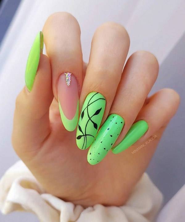 Популярно контрастное сочетание — молодежные яркие ногти, необычный красивый маникюр.