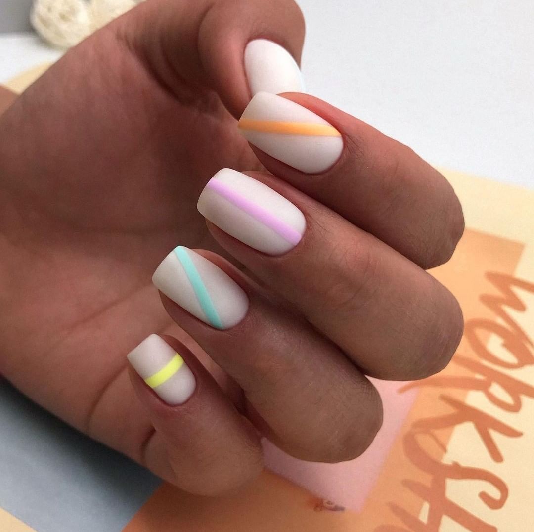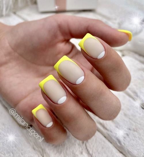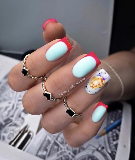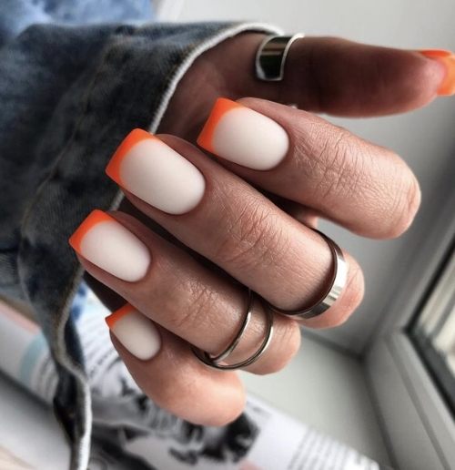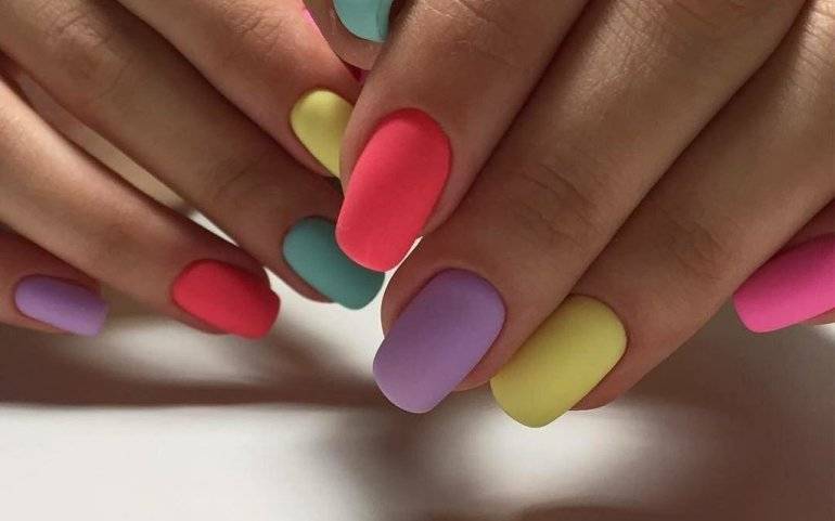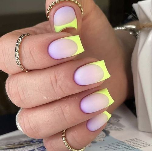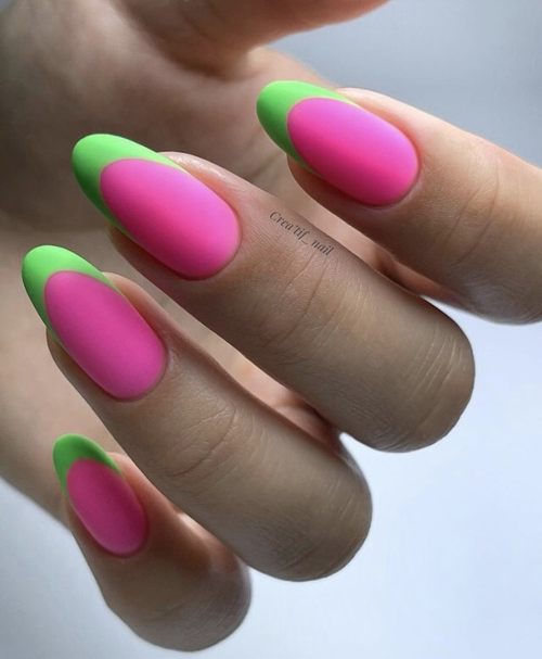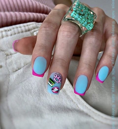 Также, в этом летнем сезоне очень популярен матовый френч в ярких контрастных оттенках.
