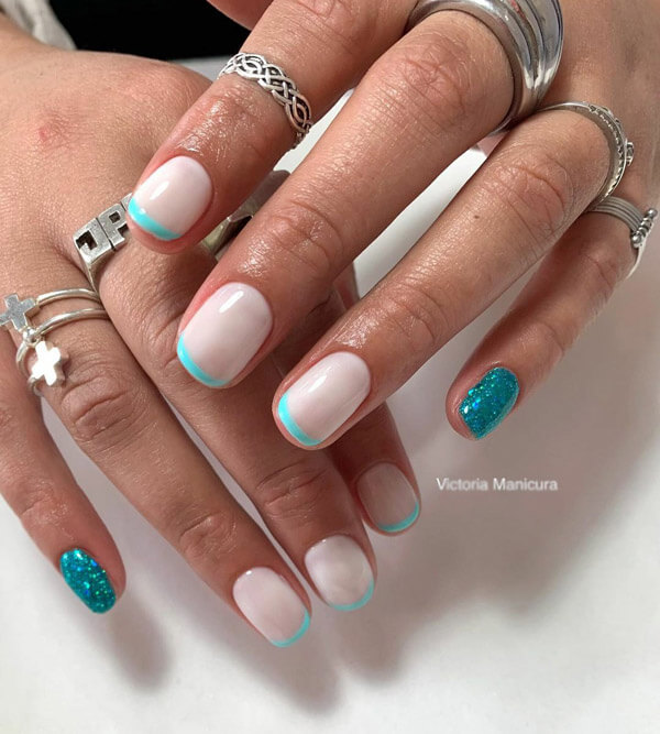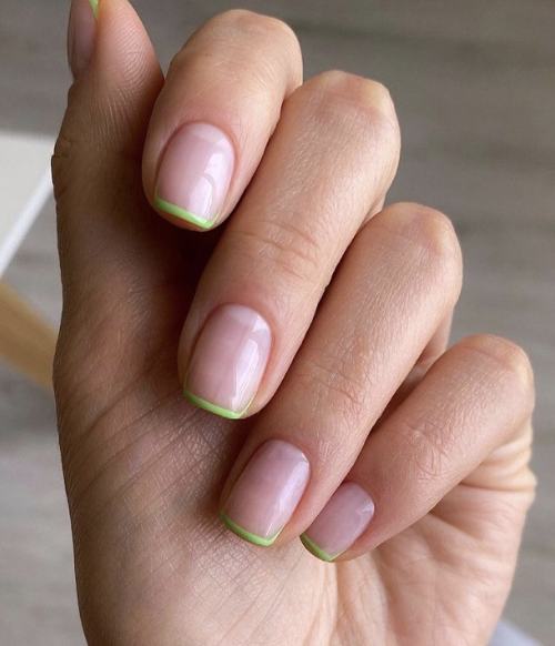 Лунный маникюр – это стильный подвид французского маникюра, который прекрасно смотрится на любой длине и форме ногтя. Для летнего сезона стоит всегда выбирать не только яркие, но и свежие цвета. Такой как голубой, салатовый, ментоловый, мятный, лимонный и другие.