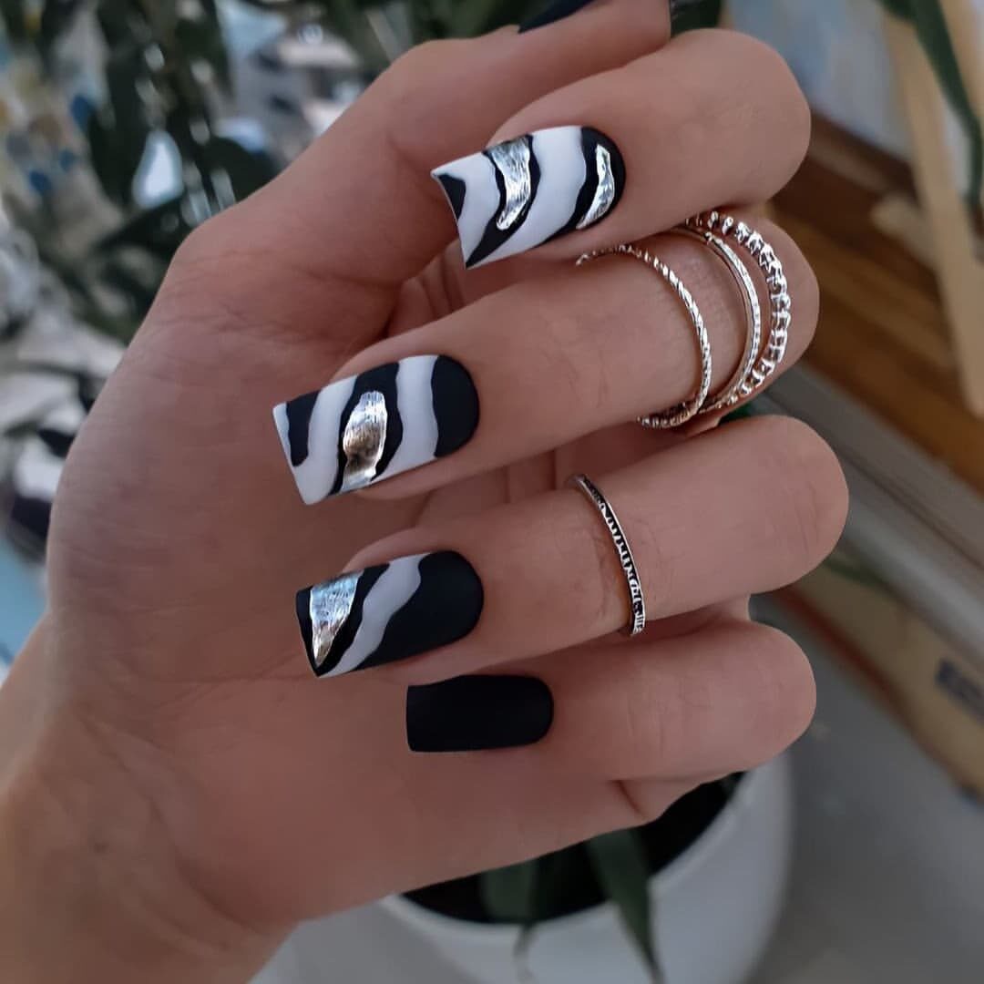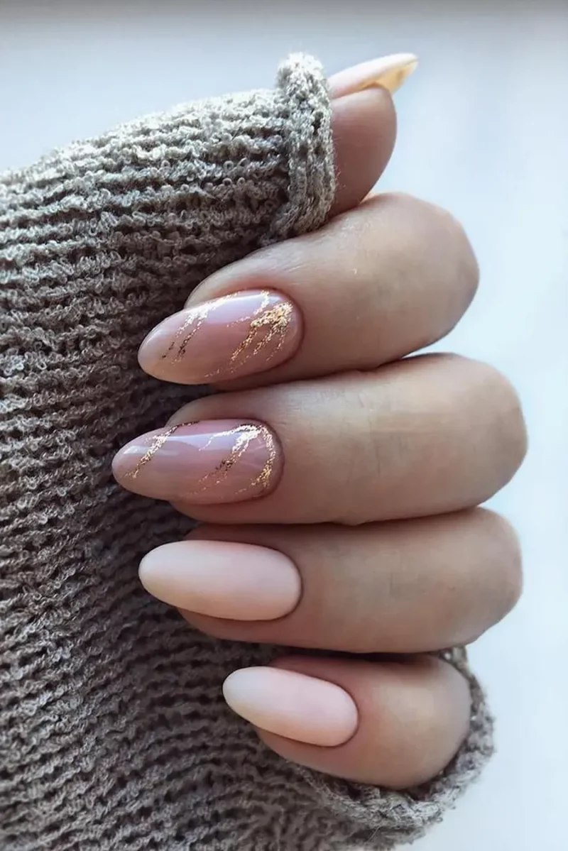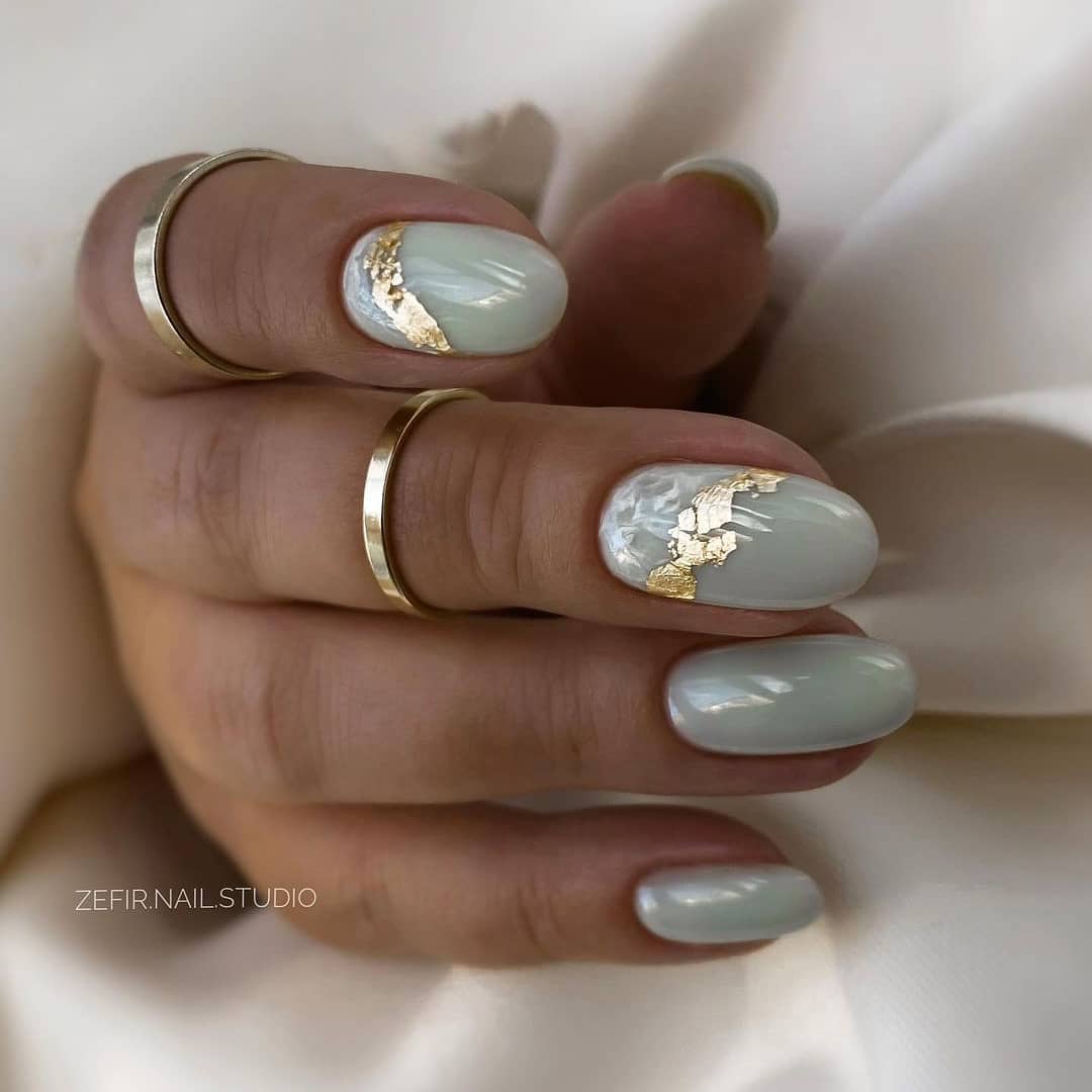 - Большой популярностью в нейл-дизайне будут пользоваться металлические глиттеры. Популярным выбором для этого образа будет фольга, которая придаст внешнему виду мягкий, красивый металлический эффект.