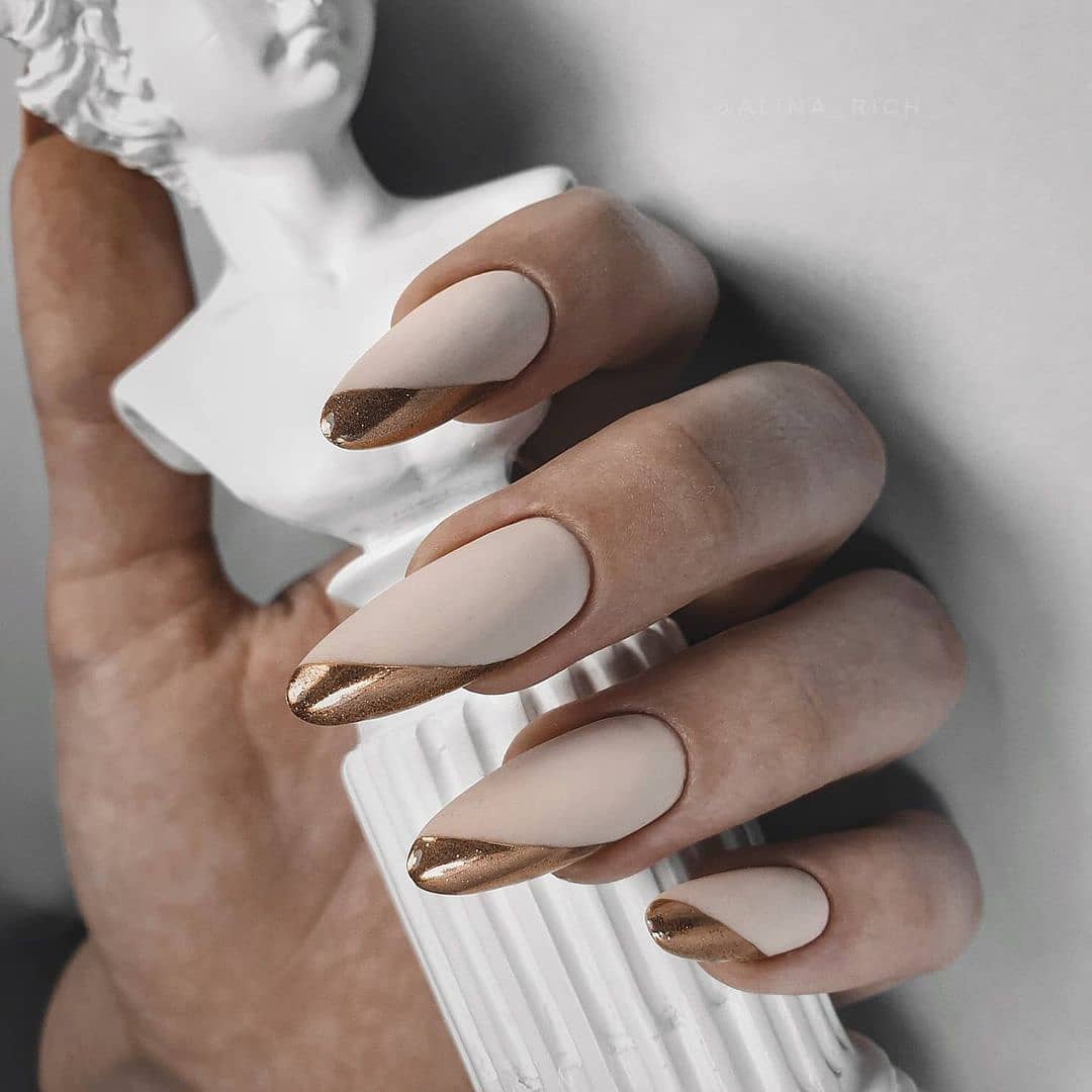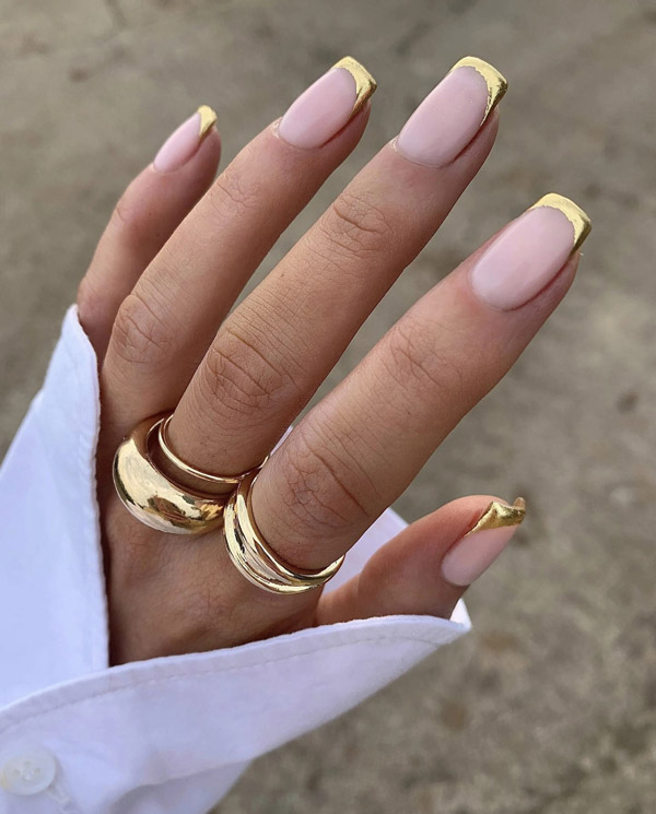 Металлические цвета 2000-х годов также вернулись с более новыми формулами, такими как зеркальные ногти — зеркальный эффект, френч золотой и серебренный.