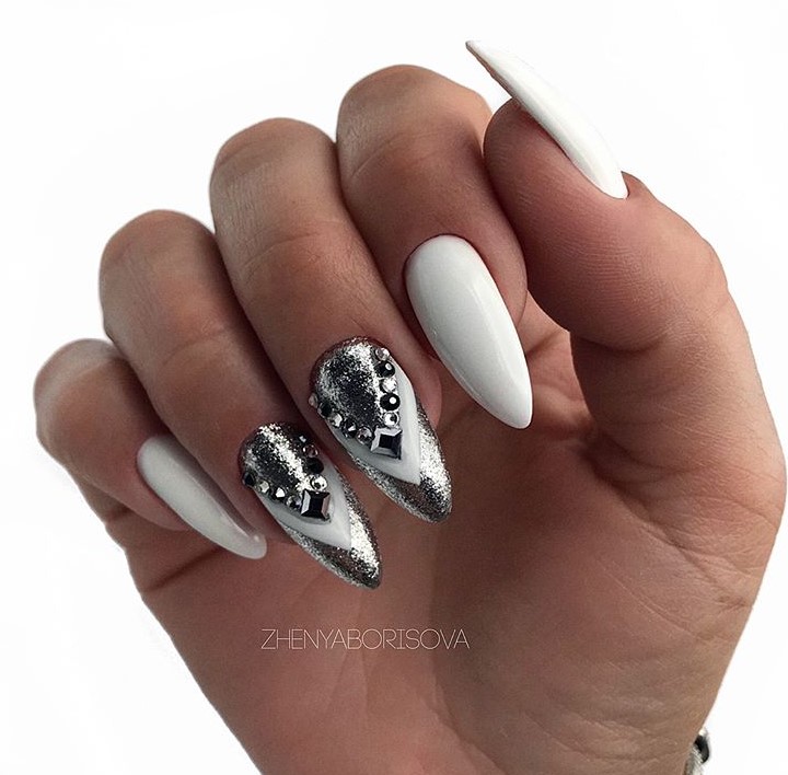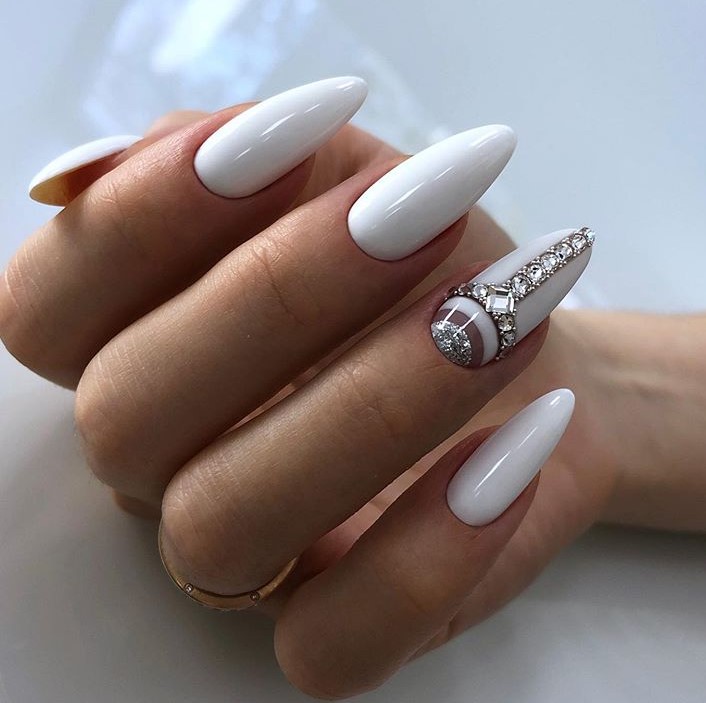 Одной из самых распространенных и любимых модницами является миндалевидная форма. Эта форма универсальна и подходит для любых типов пальцев и длины пластины. Однако, если вы активный человек и у вас длинные ногти, то такая форма не лучший вариант: легче всего ломается и не подходит людям со слабыми или ломкими ноготками.