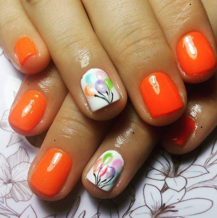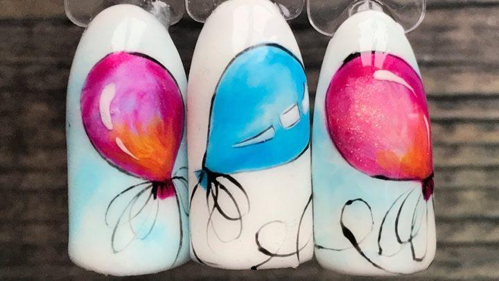 Изначально может показаться, что данный вид подойдет лишь детям. Но это не так. Воздушные шарики, выполненные на ногтях яркой палитрой, отлично подойдут на разный возраст женщины. Мало того это один из немногих рисунков, который отлично подходит на короткую длину ногтей.