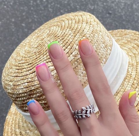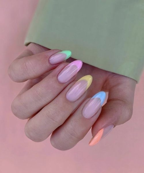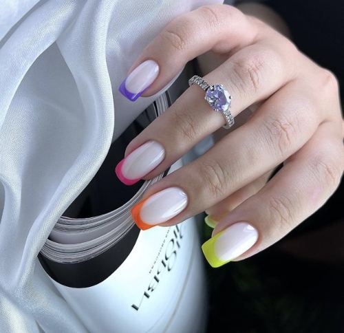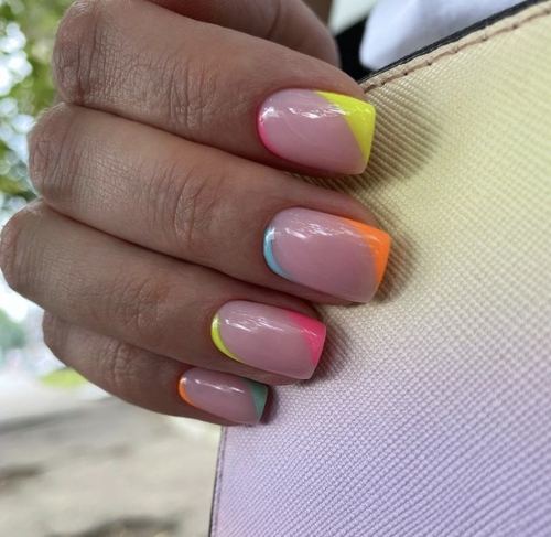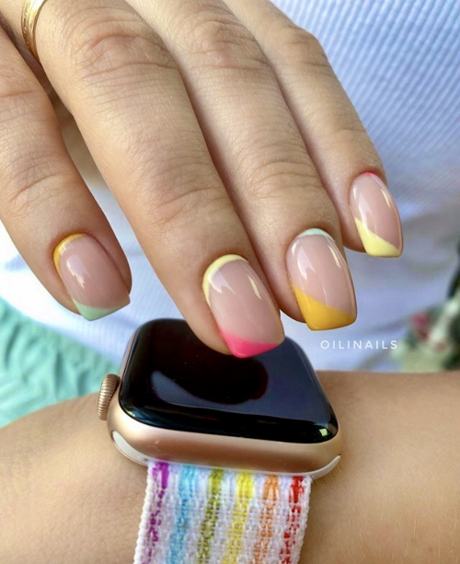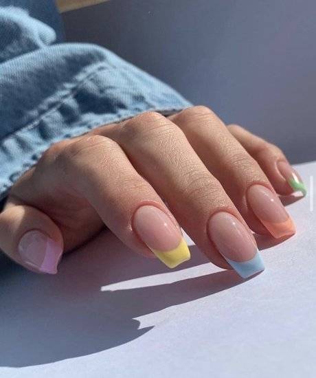 Разноцветный френч — еще один из трендов этого лета. Очень красиво и нежно он будет смотреться в приглушенных пастельных тонах.