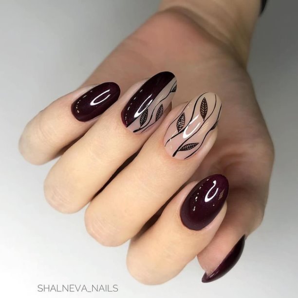 Глубокий, насыщенный темно-красный цвет ассоциируется с осенними листьями и богатством этого времени года. При желании привнести в нейл-дизайн разнообразие отличным выбором станет цвет «бургунди». Этот темный оттенок красного с легким фиолетовым или коричневым подтоном идеально подходит для осеннего стиля.
