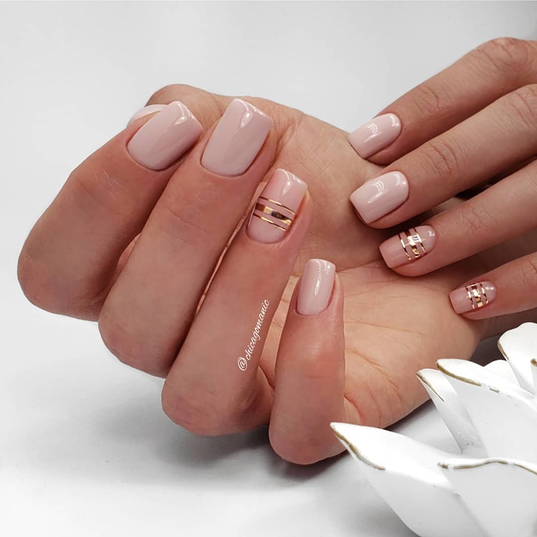 Не смотря на то, что летом хочется более ярких красок, нюдовый и минималистичный дизайны будут популярны на ровне с разноцветным маникюром. Минимализм и натуральность в моде уже не первый год, но в 2019-ом эти стили получат новое прочтение. Самым трендовым считается сочетание в маникюре бежевого и черного оттенка гель-лака.