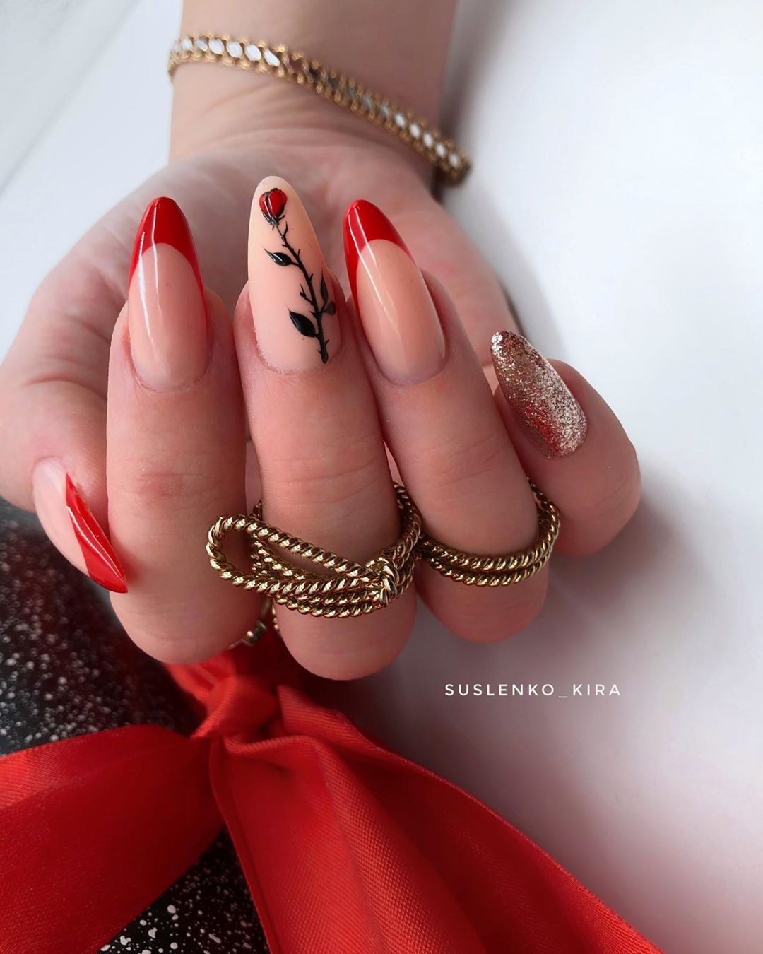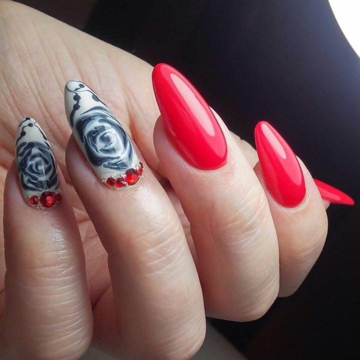 Цветочный принт всегда ценился девушками за свою яркость, женственность и красоту. Но среди всех цветов можно выделить королеву – розу. Такой цветок нарисованный на вашем ноготке способен придать всему образу изюминку. Розы могут быть выполнены любыми цветами, в любом случае они сделают любой маникюр с любым покрытием, особенным.
