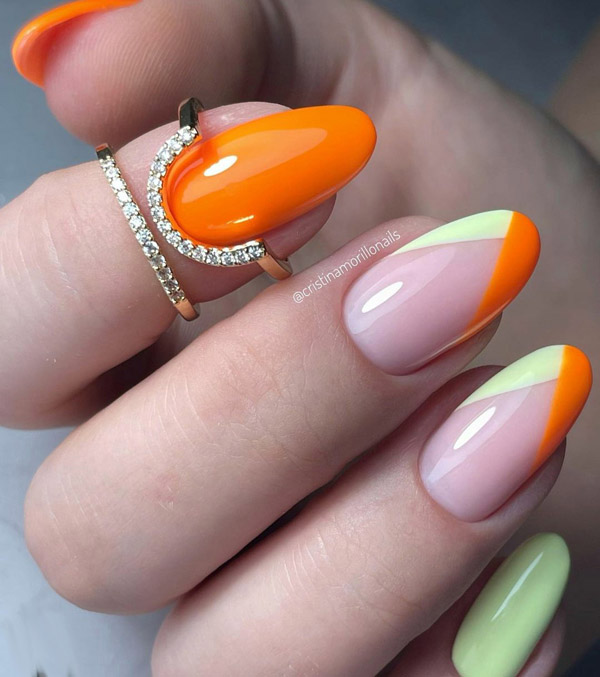 Оранжевый и нежно зеленый — модное сочетание лета 2024.