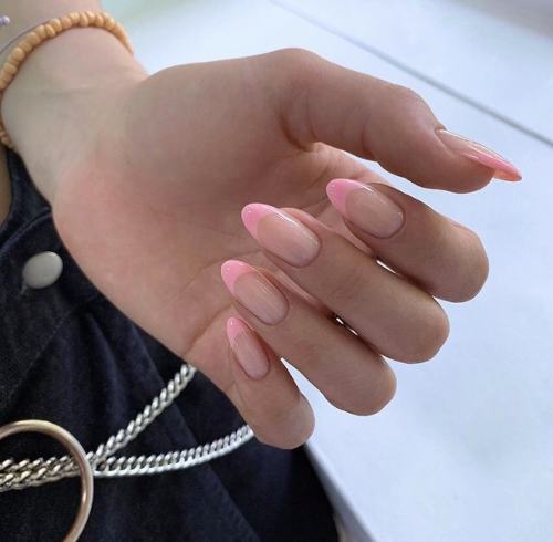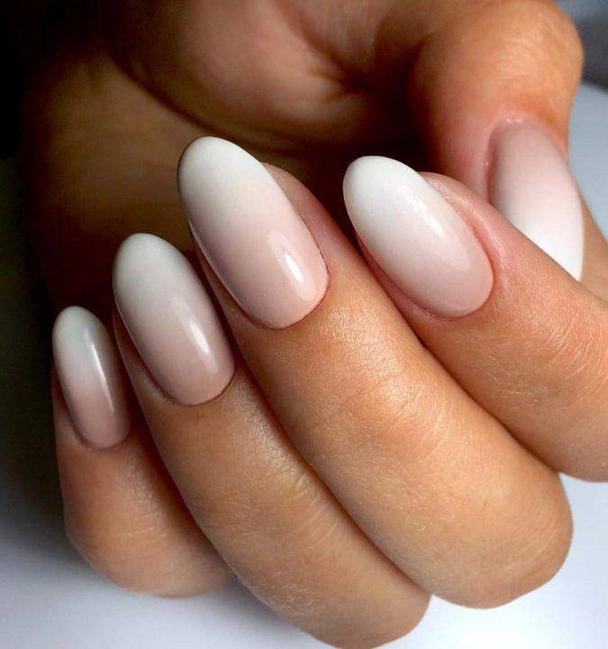 Не ограничивайтесь лишь только однотонным выбором лака, а можете применить технику омбре или градиент. Это будет превосходное решение для лунного маникюра.