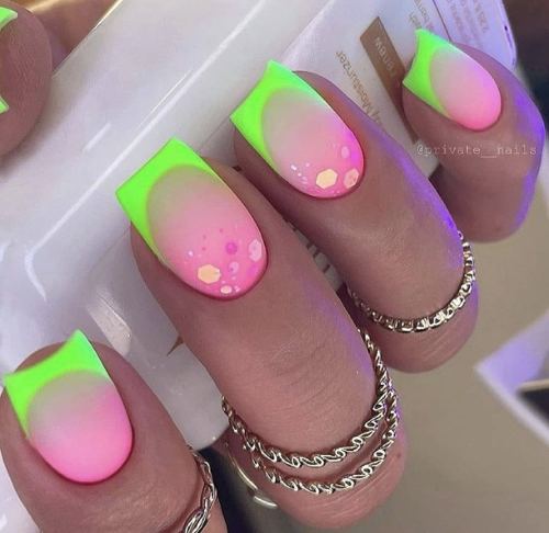 Стильно, свежо смотрится безусловный хит сезона – матовые неоновые ноготки.