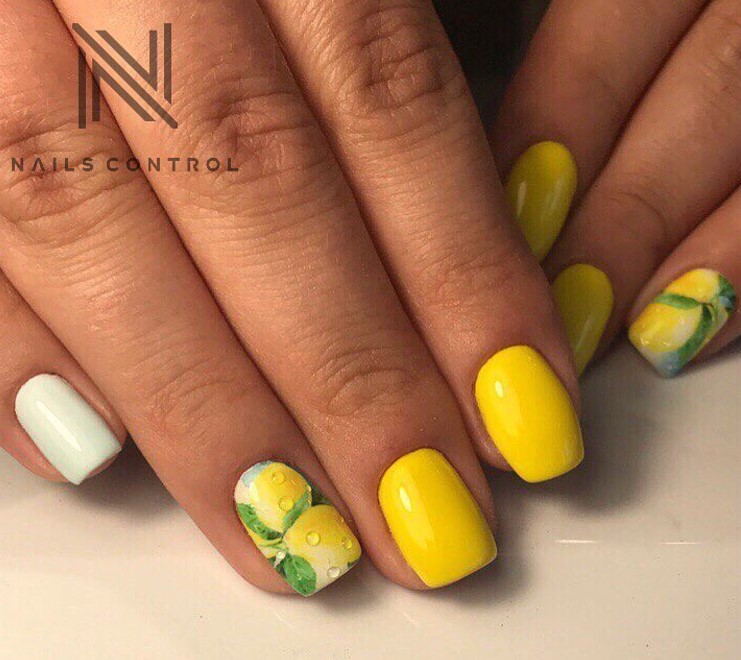 Современные техники nail-дизайна позволяют создавать очень реалистичные рисунки на ногтях. В связи с этим тема сочных фруктов этим летом получит новую жизнь. Рисунки лимонов, арбузов и киви будут становится объемными, более проработанными, декорированными сочными капельками.