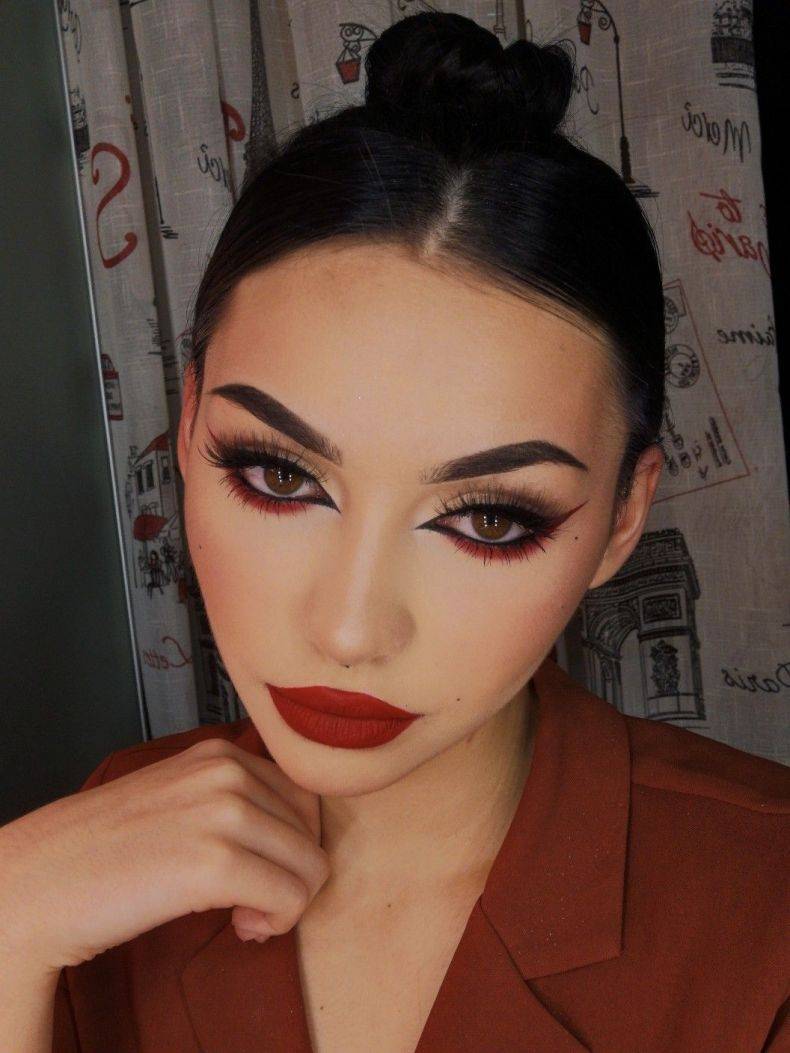 А еще можно применить небольшую бьюти-уловку, а именно использовать красную подводку. Она может помочь сделать стрелки более аккуратными и соблазнительными. А реснички можно и вовсе не красить.