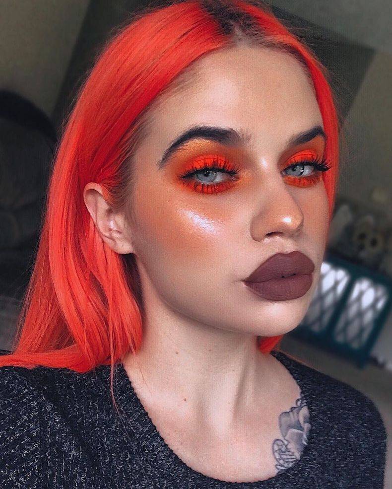 Обладательницам волос цвета заката и так способны привлекать внимание, поэтому выделить что-то макияжем достаточно трудно. Однако можно воспользоваться в визаже средствами декоративной косметики красных тонов