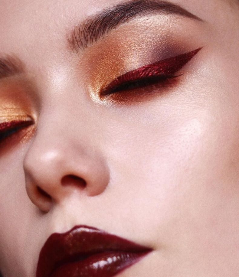 Макияж в золотых тонах подходит к любому оттенку кожи и сочетается с любым цветом глаз. Он эффектно смотрится в полумраке, при свечах или отблеске живого огня.