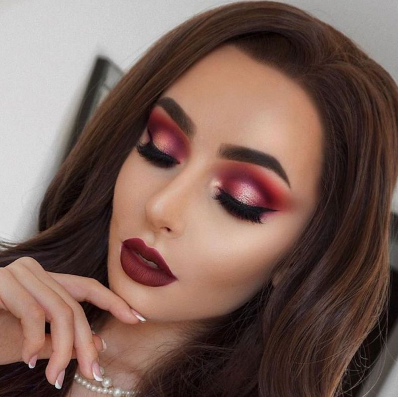 Макияж глаз с красными тенями