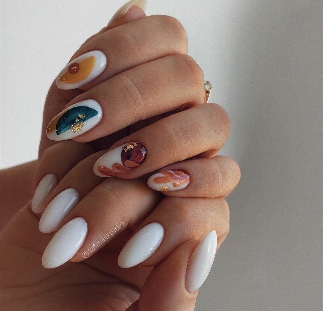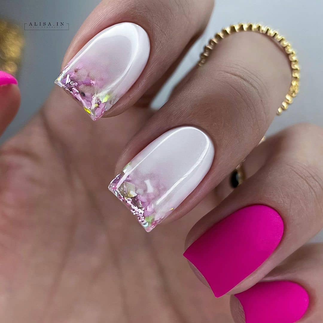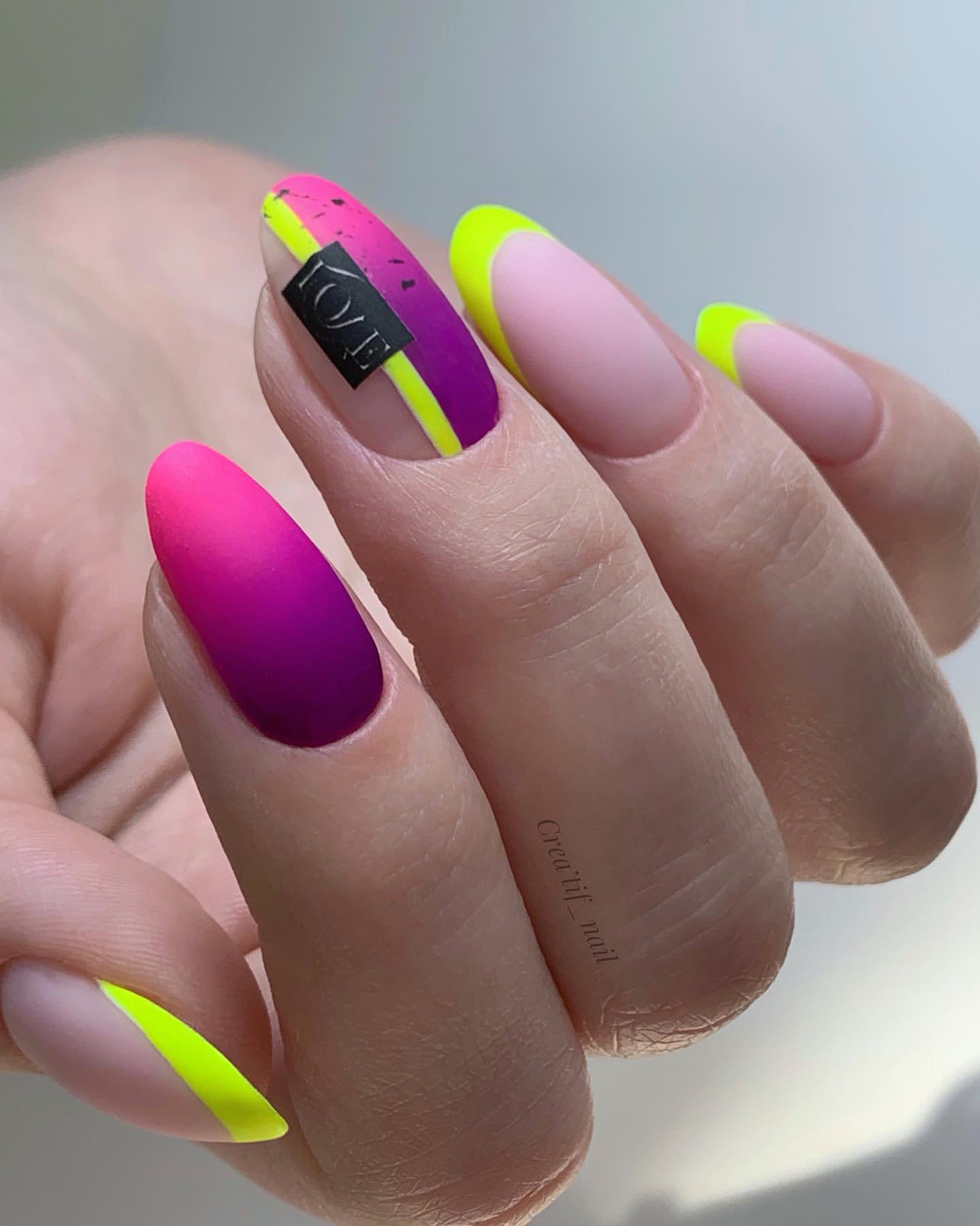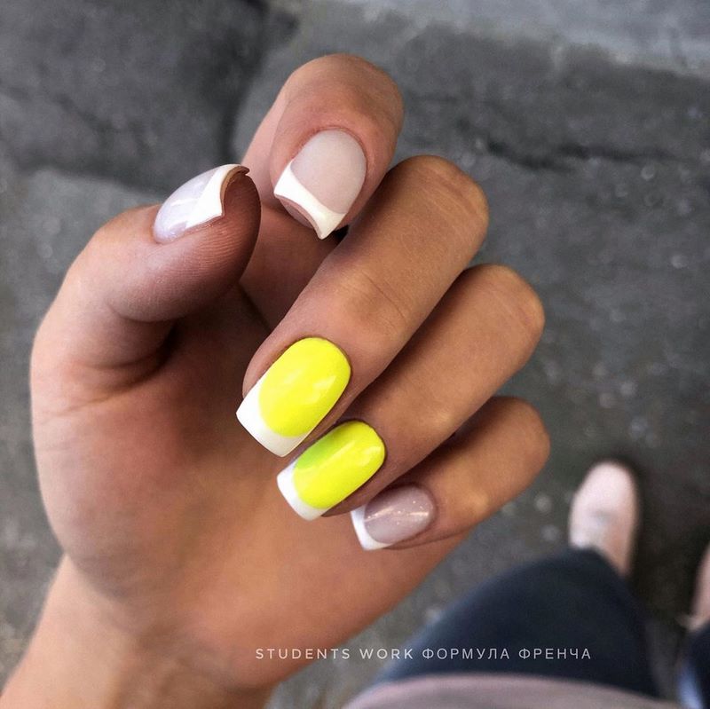 Для создания такого маникюра часто используют разные цвета на одном ногте. Просто добавьте узор или другой элемент. Примером могут служить французские ногти разных оттенков, покрытые разными лаками.