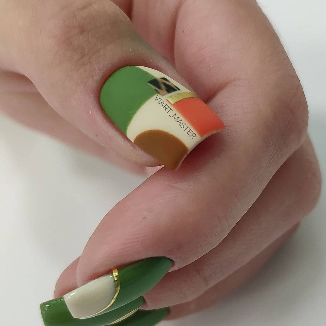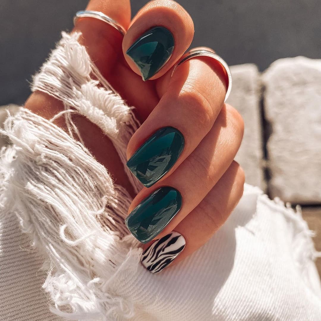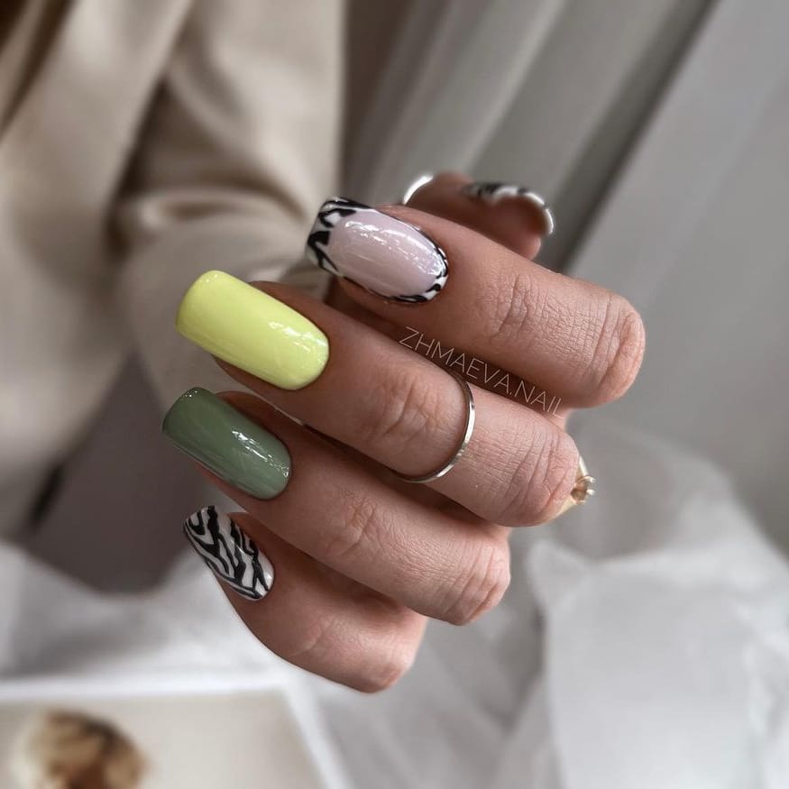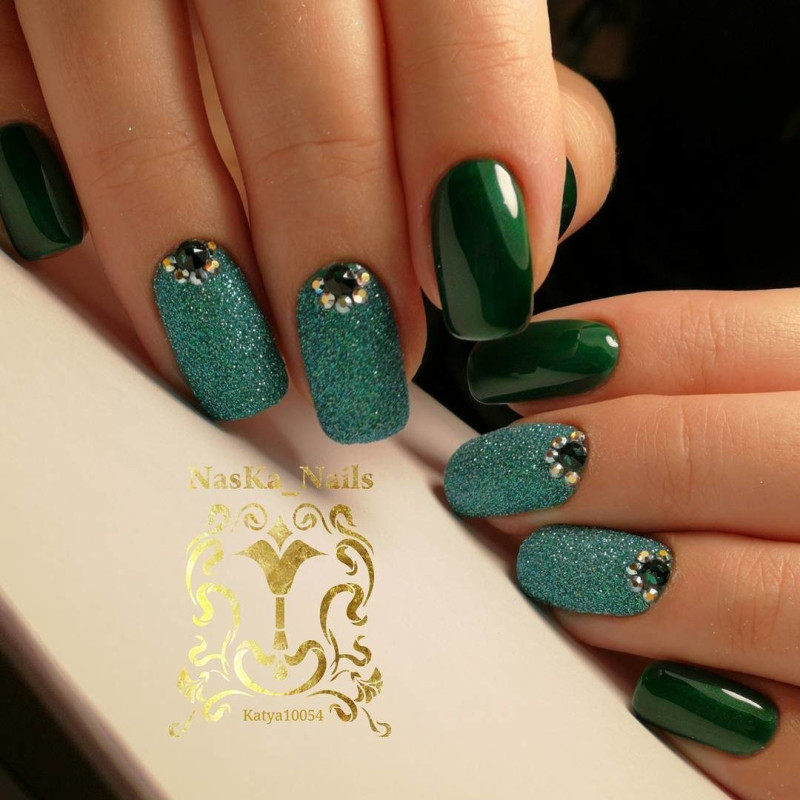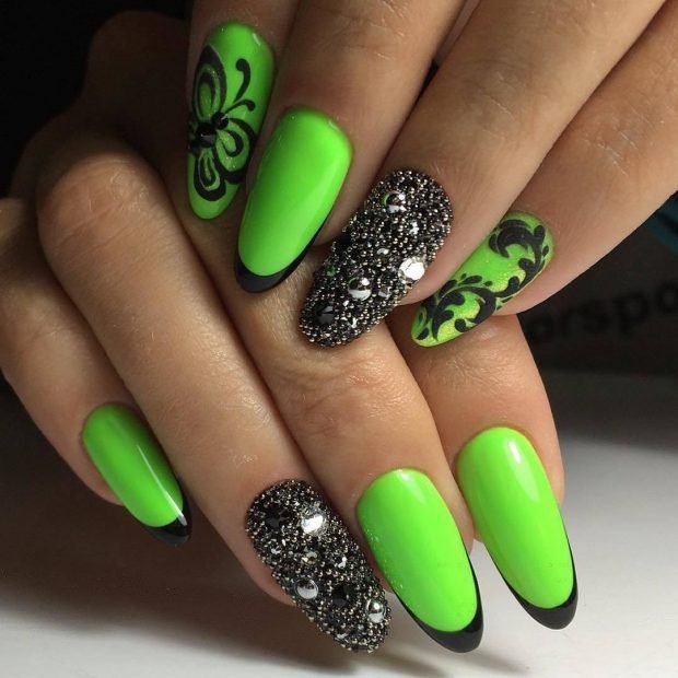 Белый и черный, желтый и синий, фиолетовый и розовый – простые сочетания с зеленым. Насыщенные цветовые сочетания с оттенками зеленого – шикарный выбор для женщин всех возрастов, форм и длины ногтей.
