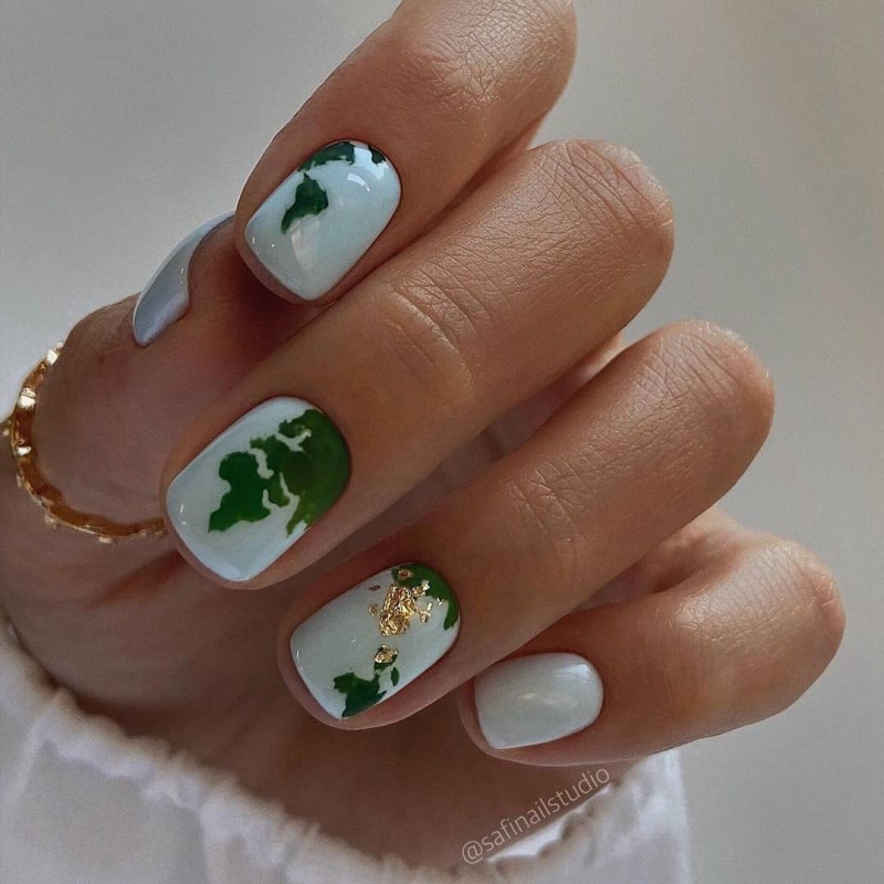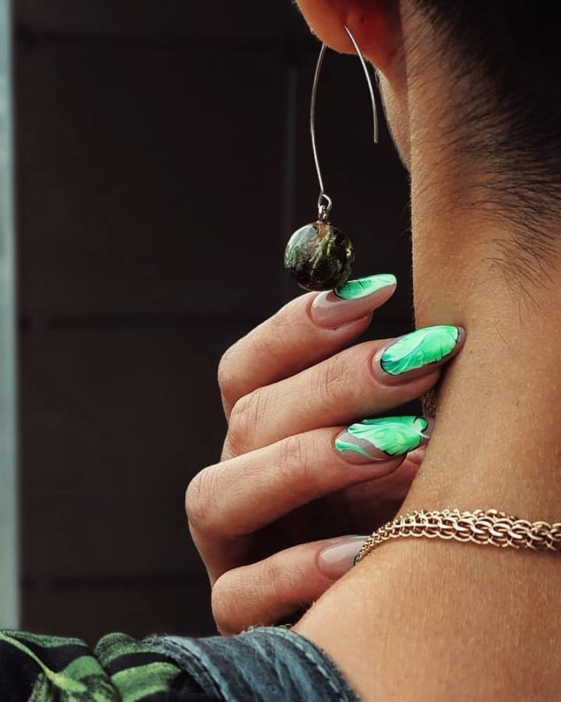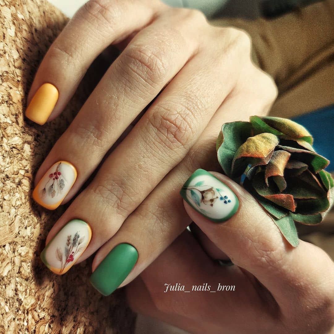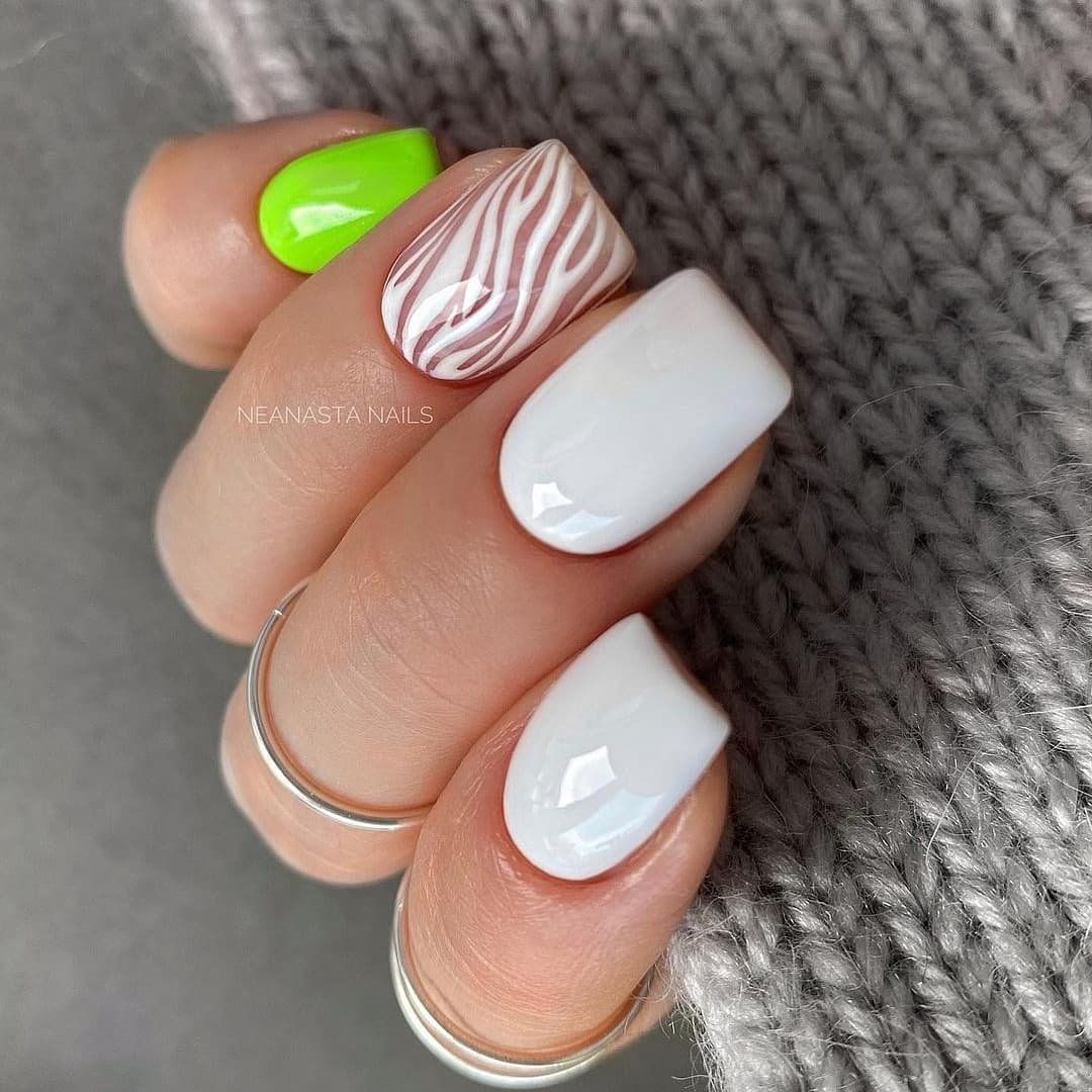 Белый и черный, желтый и синий, фиолетовый и розовый – простые сочетания с зеленым. Насыщенные цветовые сочетания с оттенками зеленого – шикарный выбор для женщин всех возрастов, форм и длины ногтей.