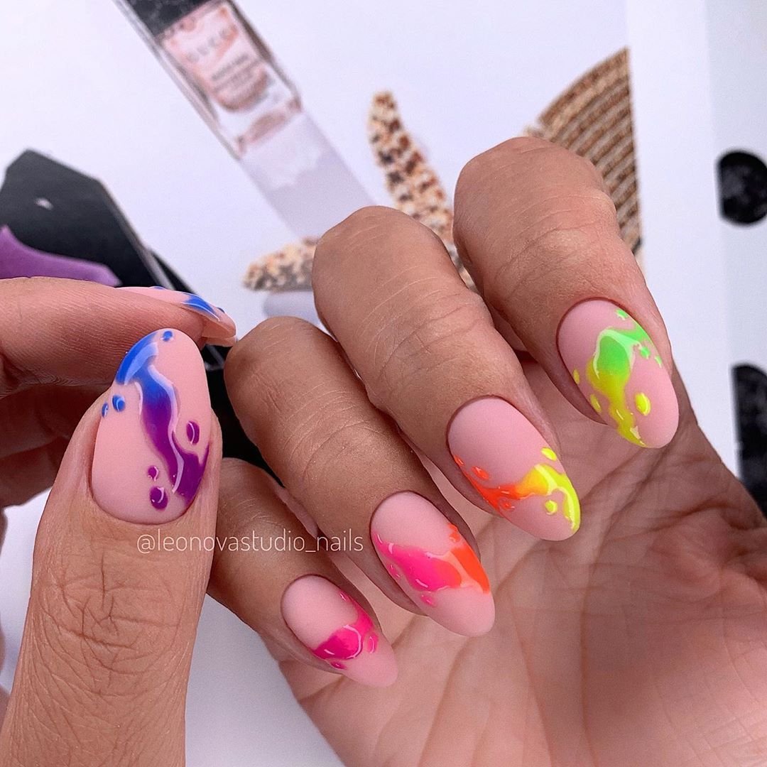 Кроме того, в одном летнем дизайне можно сочетать яркие брызги и мазки краски.