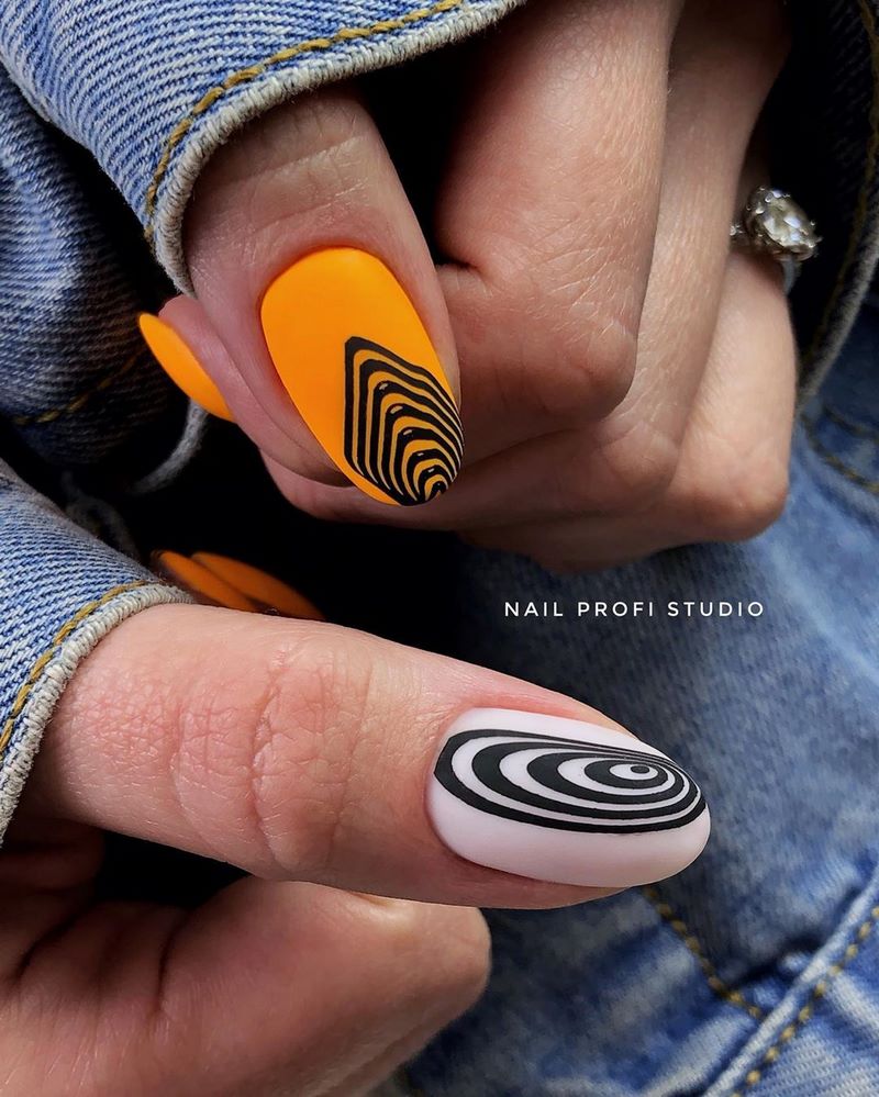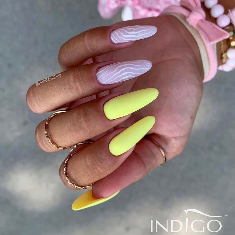 Нанесите минималистичный орнамент в черно-желтой гамме, и ваш маникюр станет еще интереснее. Вы также можете создать элегантный маникюр с кружевным орнаментом (см. примеры ниже):