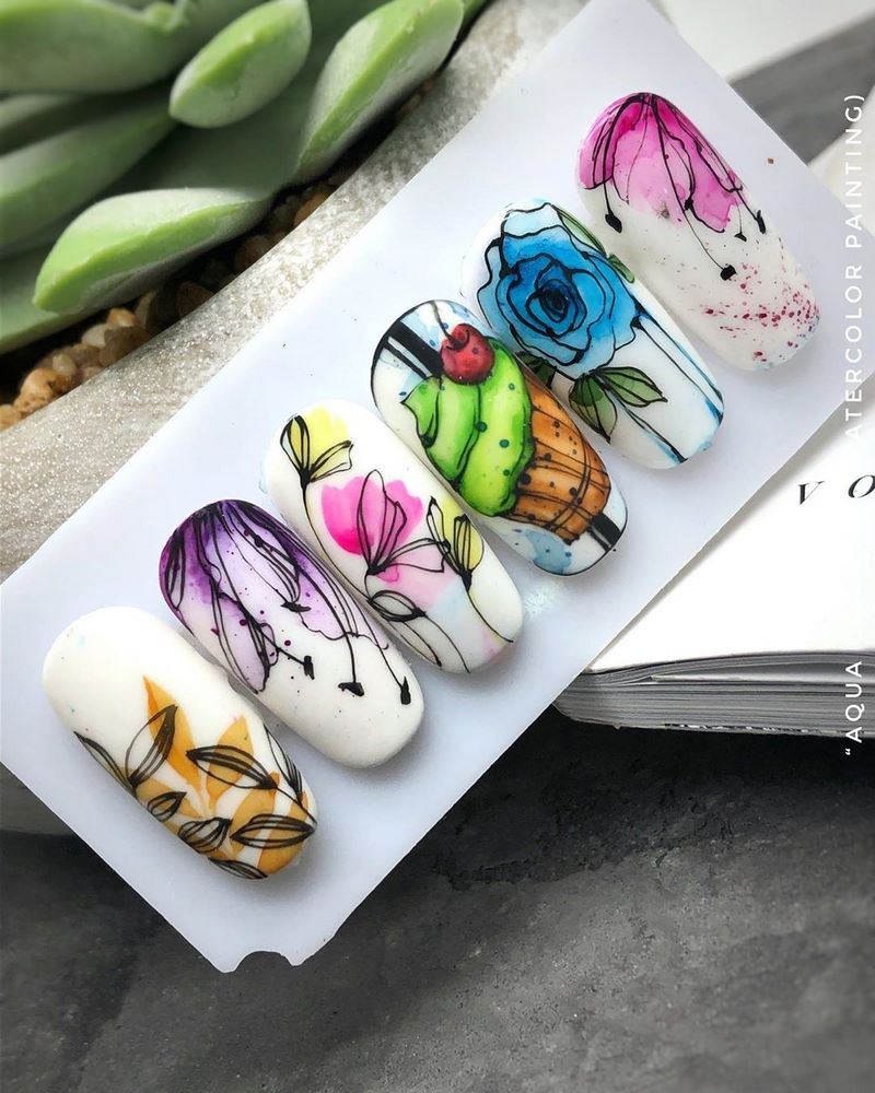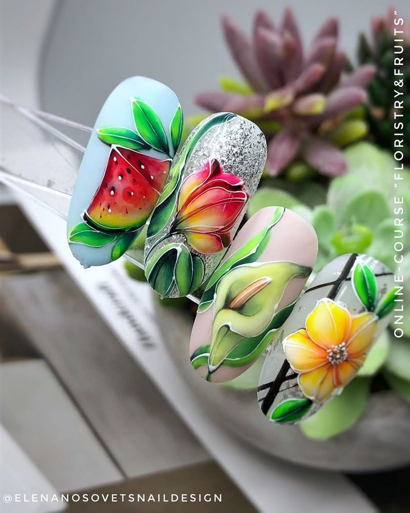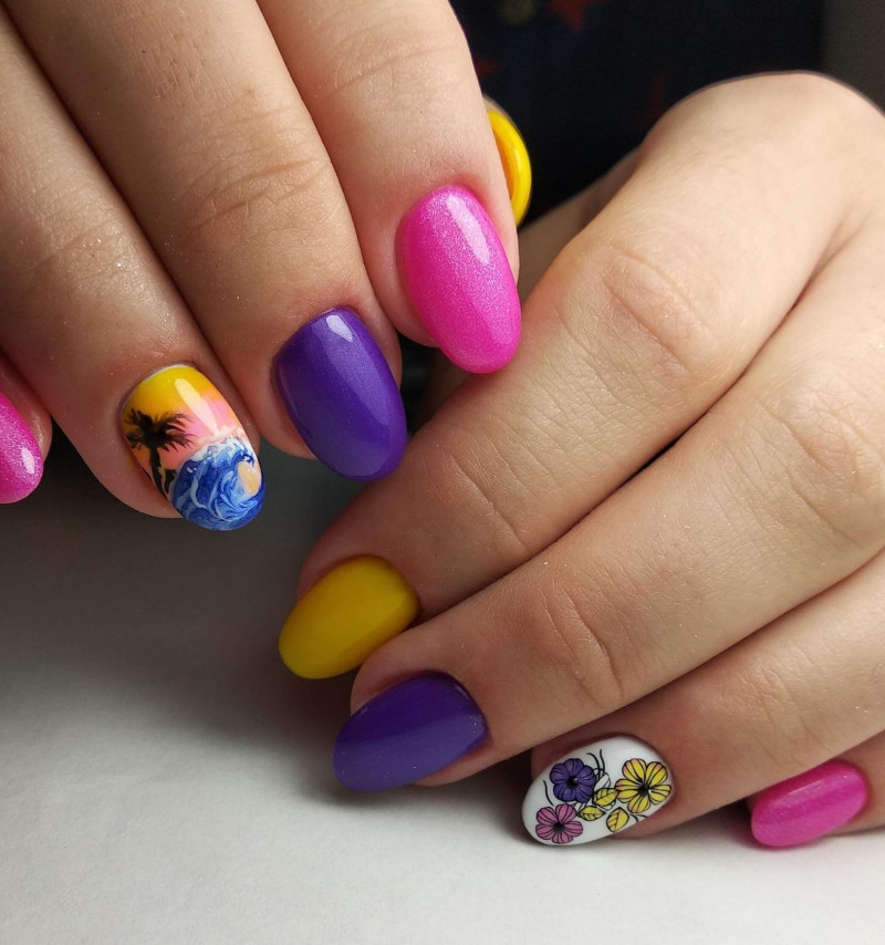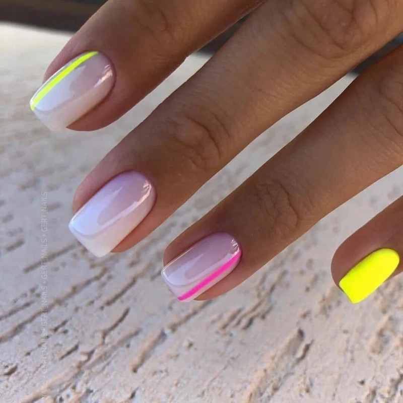 Важно, чтобы они были контрастными базе. Кроме того, в одном летнем дизайне можно сочетать яркие брызги и мазки краски