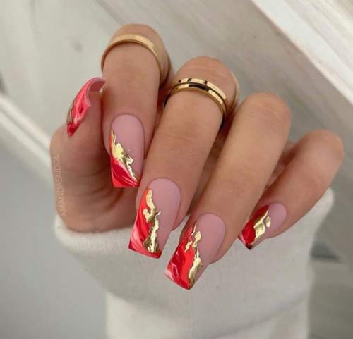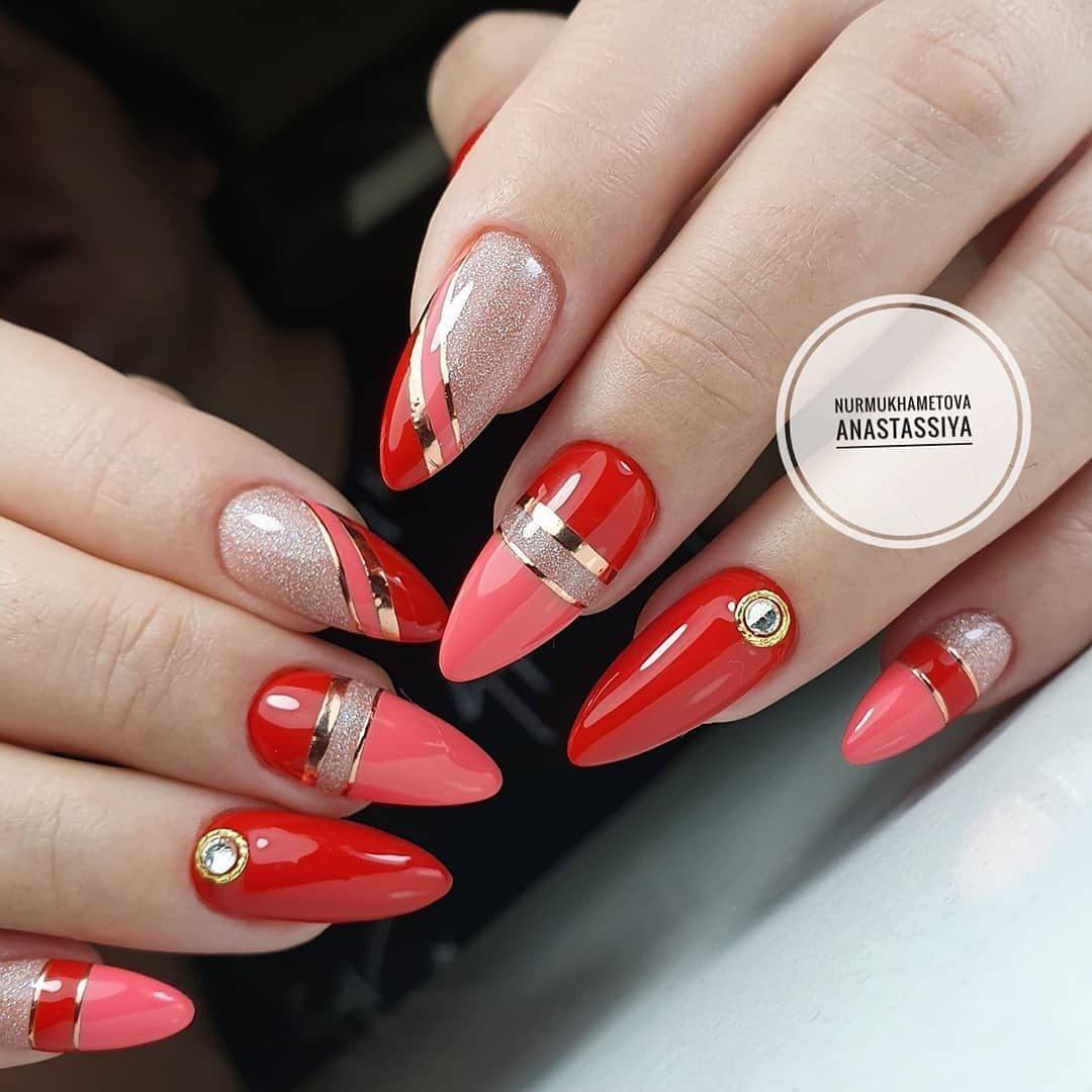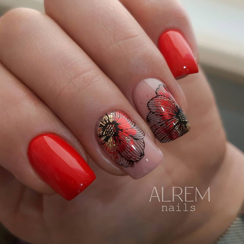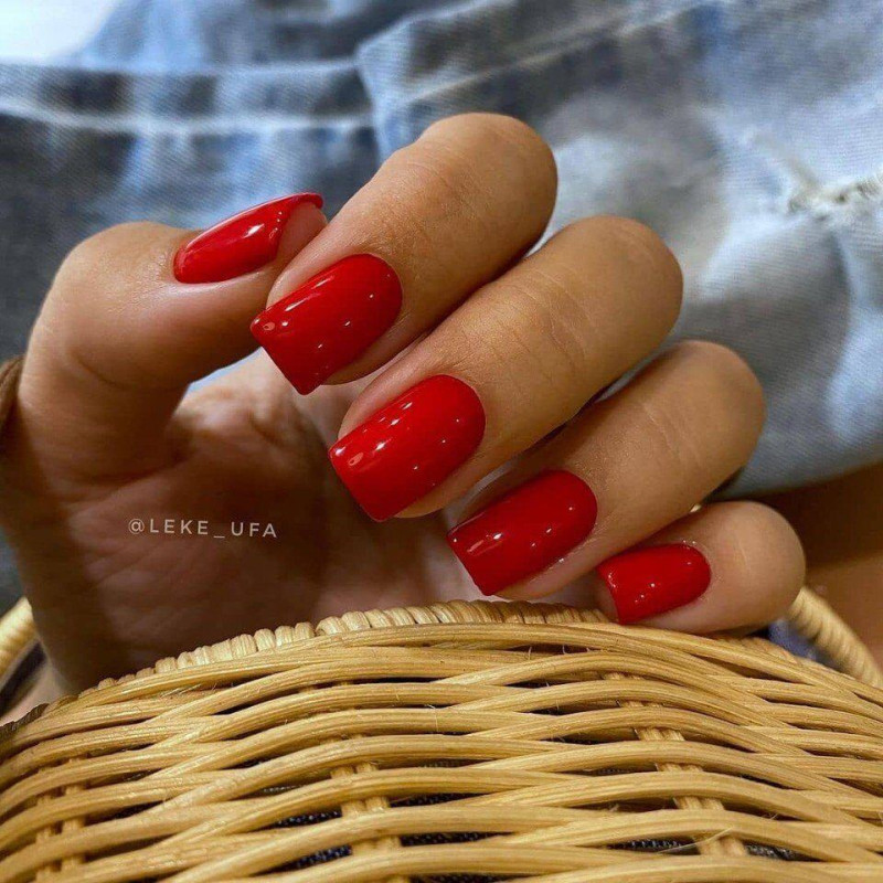 Алый — любимый цвет обладательниц коротких ногтей и яркого маникюра в стиле классика. И будем честны: красный однотонный маникюр не теряет свои позиции — в тренде. Помимо такого варианта, стемпинг, стиль цветными блоками, сочетание красного и розового, алого и бежевого подчеркнут яркость нейл-дизайна.