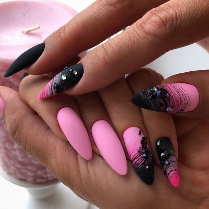 Расцветка для маникюра достаточно разнообразна, ведь обладательницы необычного дизайна могут позволить себе намного больше, чем девушки с короткими ногтями. Практически любой вариант будет смотреться гармонично.