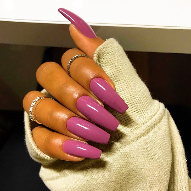 Покрытие без дизайна остается неизменной классикой. Более того, сейчас отмечается рост интереса к нему. Однотонный маникюр на длинных ногтях создает строгий, но стильный женственный образ.