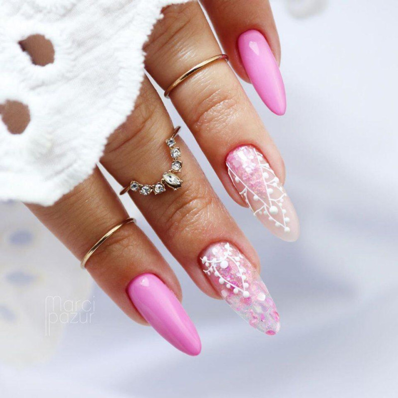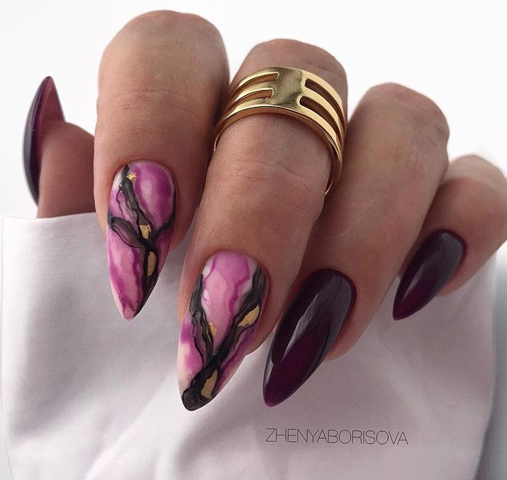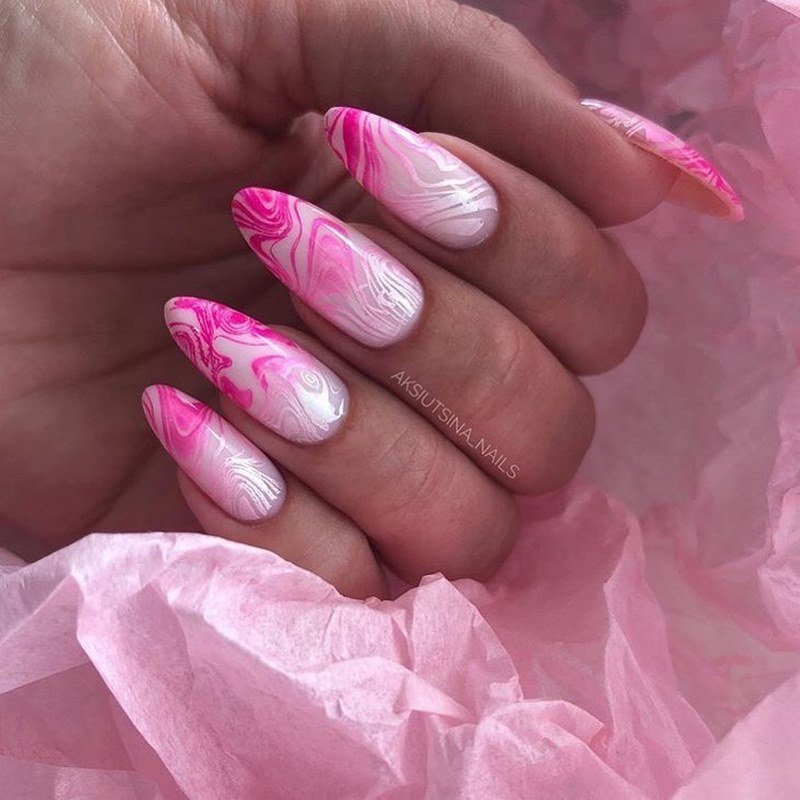 Мы привыкли к мраморному маникюру, который находится в топе трендов не один сезон. В летний период можно воплотить массу замечательных идей с мраморными ноготками. Но летом стоит выбирать розовые, голубые и другие нежные текстуры. Посмотрите на природу — здесь абсолютно точно есть то, на что стоит ориентироваться.