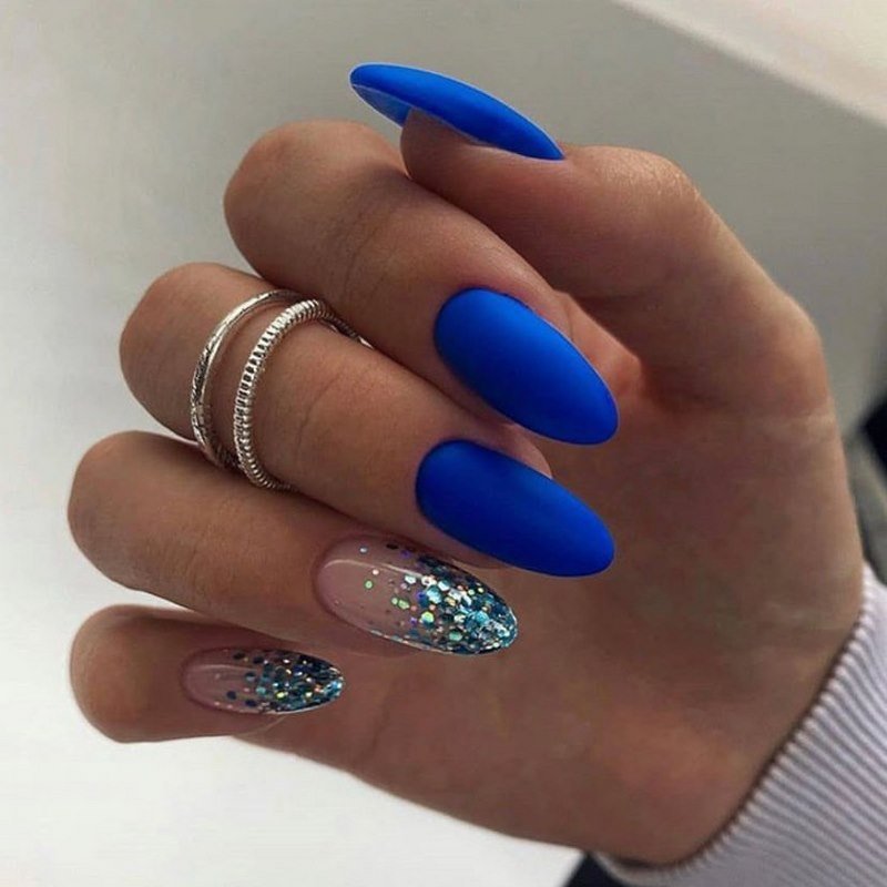 Матовость и яркие нотки, безусловно, могут изменить эффект всего стиля, поэтому ногти с блестками – идеальное решение. Вы можете покрыть все ногти лаком с блестками или сосредоточиться только на 2 или даже 1 пластине.