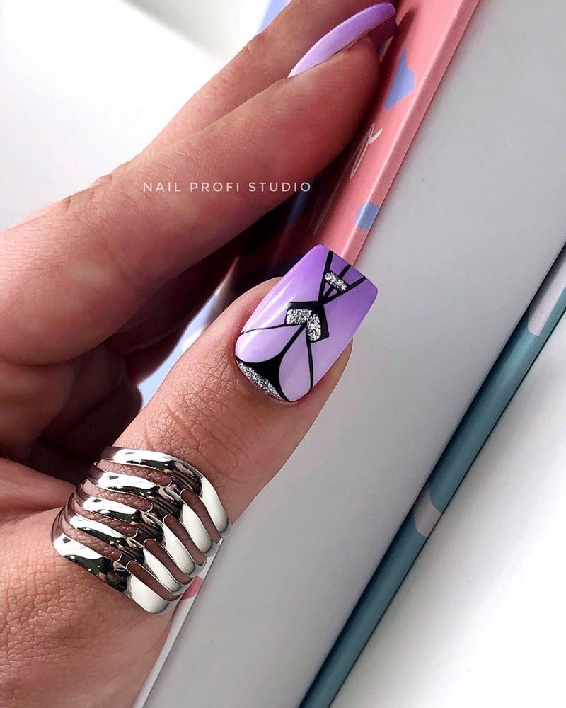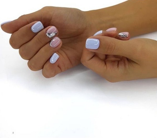 Особенно хорош будет глиттер в том случае, если барышня оформляет маникюр к вечеринке, походу в кафе или клуб. А еще широко применяется специальная нейл фольга. Такой декор подходит для праздничного, нарядного маникюра. Можно использовать сиреневый, нежный лиловый, золотистый, голубой вариант фольги. Также ее стоит подбирать под основные цвета. Не стоит украшать фольгой слишком яркие ногти, или стремится оформить яркий маникюр, излишне помпезным – получится обратный эффект. Ногти просто захочется прятать.